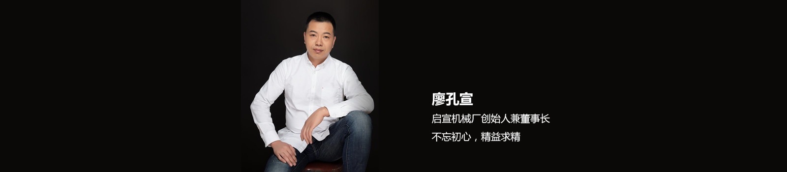 - 廖孔宣-瑞安市啟宣機械有限公司創(chuàng)始人兼董事長。 1989年在溫州梧田撕裂膜廠做工,2005年自己創(chuàng)辦了鵬博機械廠,誠信經(jīng)營,不忘初心,精益求精。之后機械廠正式改名瑞安市啟宣機械有限公司。